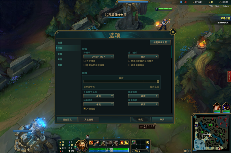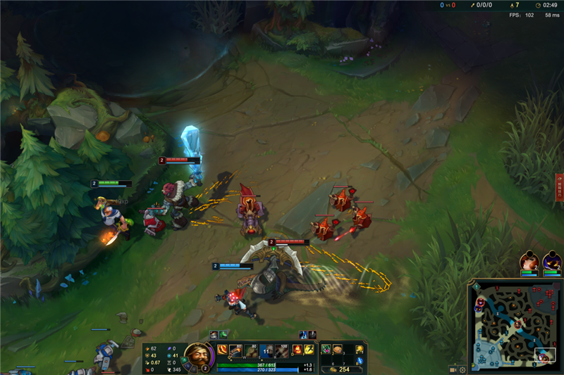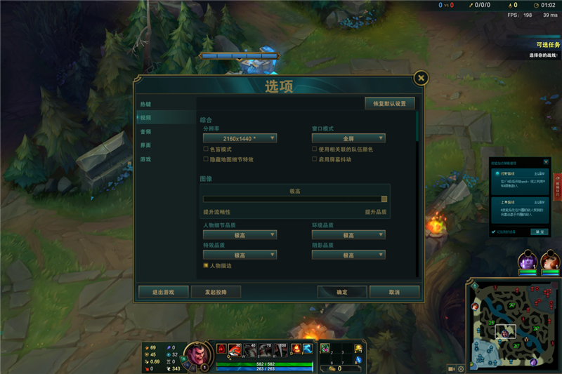 测试游戏《英雄联盟》,使用系统为Windows 10,2K分辨率画质最高,对线期帧数在160帧左右,团战帧数在100帧左右。