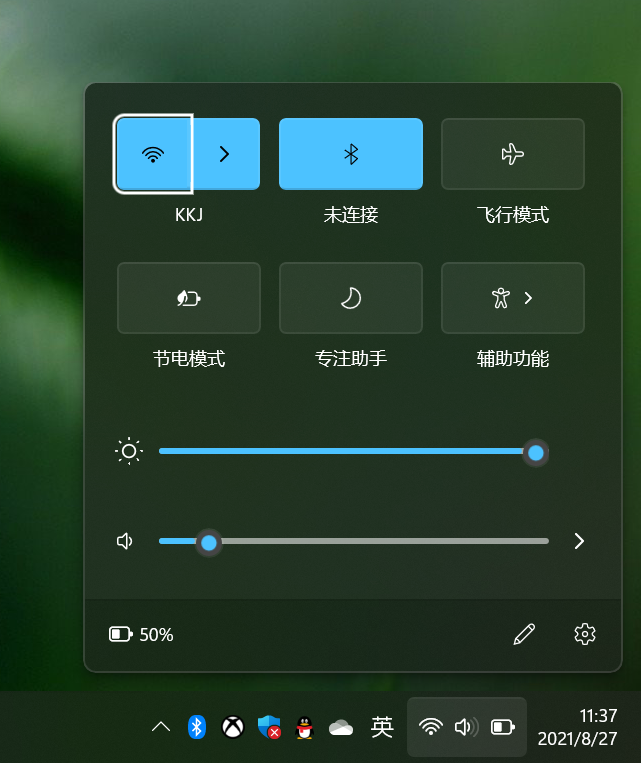 操作中心变化非常大,电池、音量、网络三个选项被放到了一起,有点像手机平板的通知中心,而且终于可以直接修改屏幕亮度了。