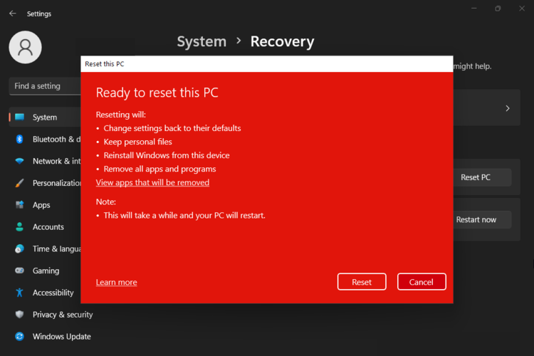 - 您的 PC 将重新启动并进行重置过程。这可能需要一段时间,所以请耐心等待。