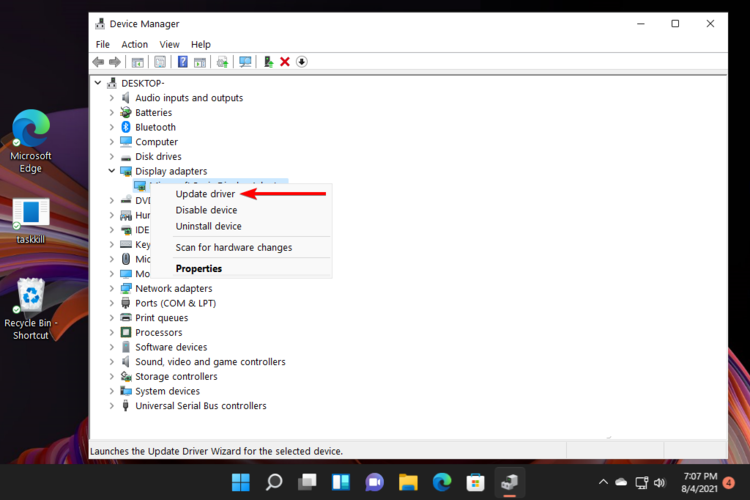 - 右键单击第一个驱动程序,然后选择Update driver。
