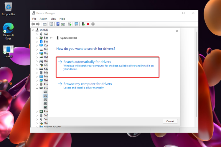 - 单击自动搜索驱动程序。