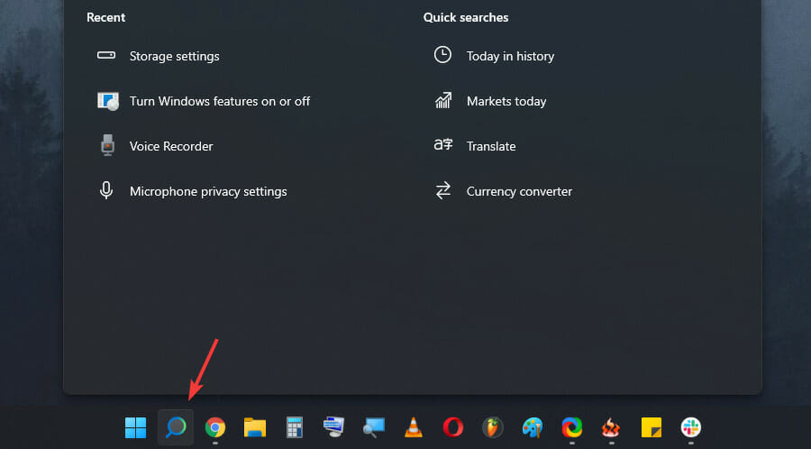 - 单击任务栏中的搜索按钮。