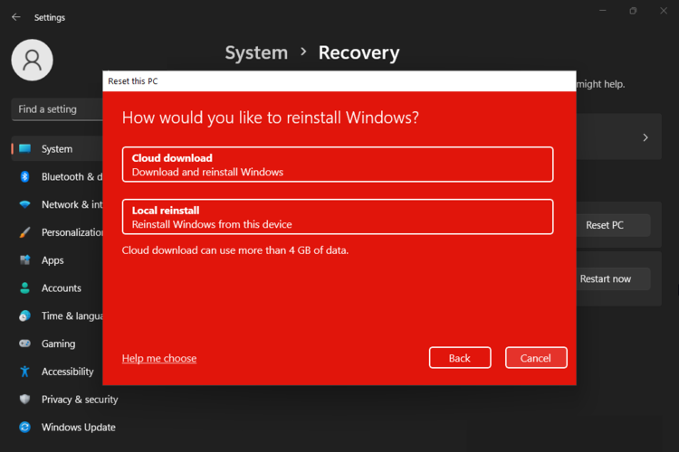 - 选择“云下载”或“本地重新安装”。