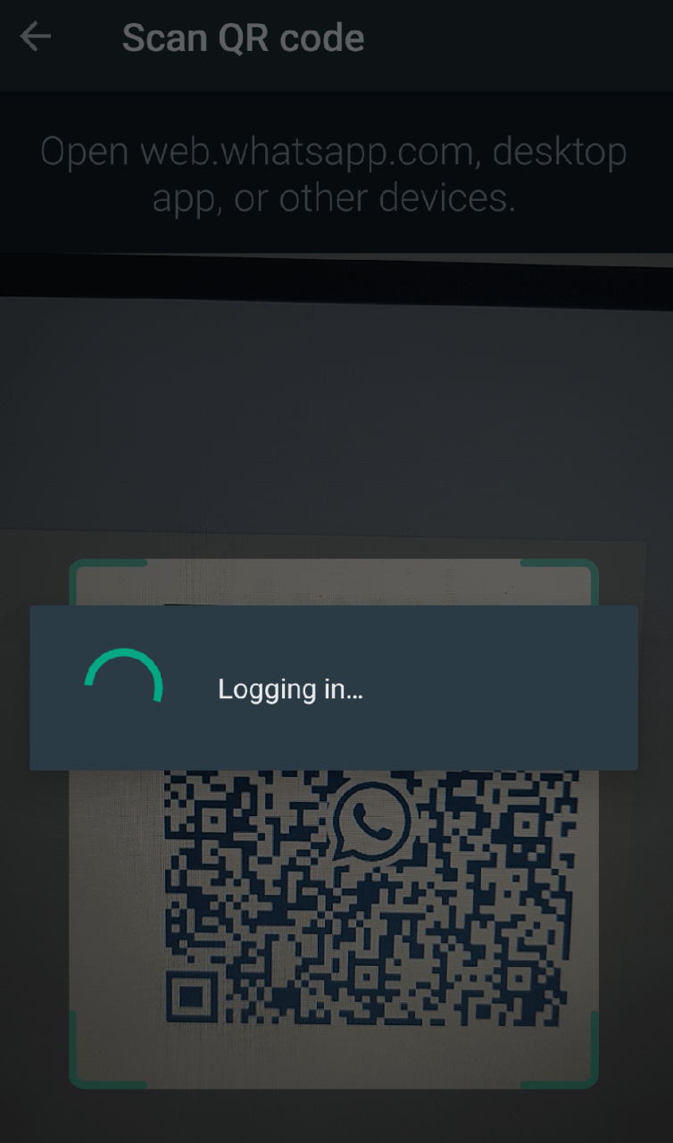 - 您应该在扫描二维码后自动登录WhatsApp Web。