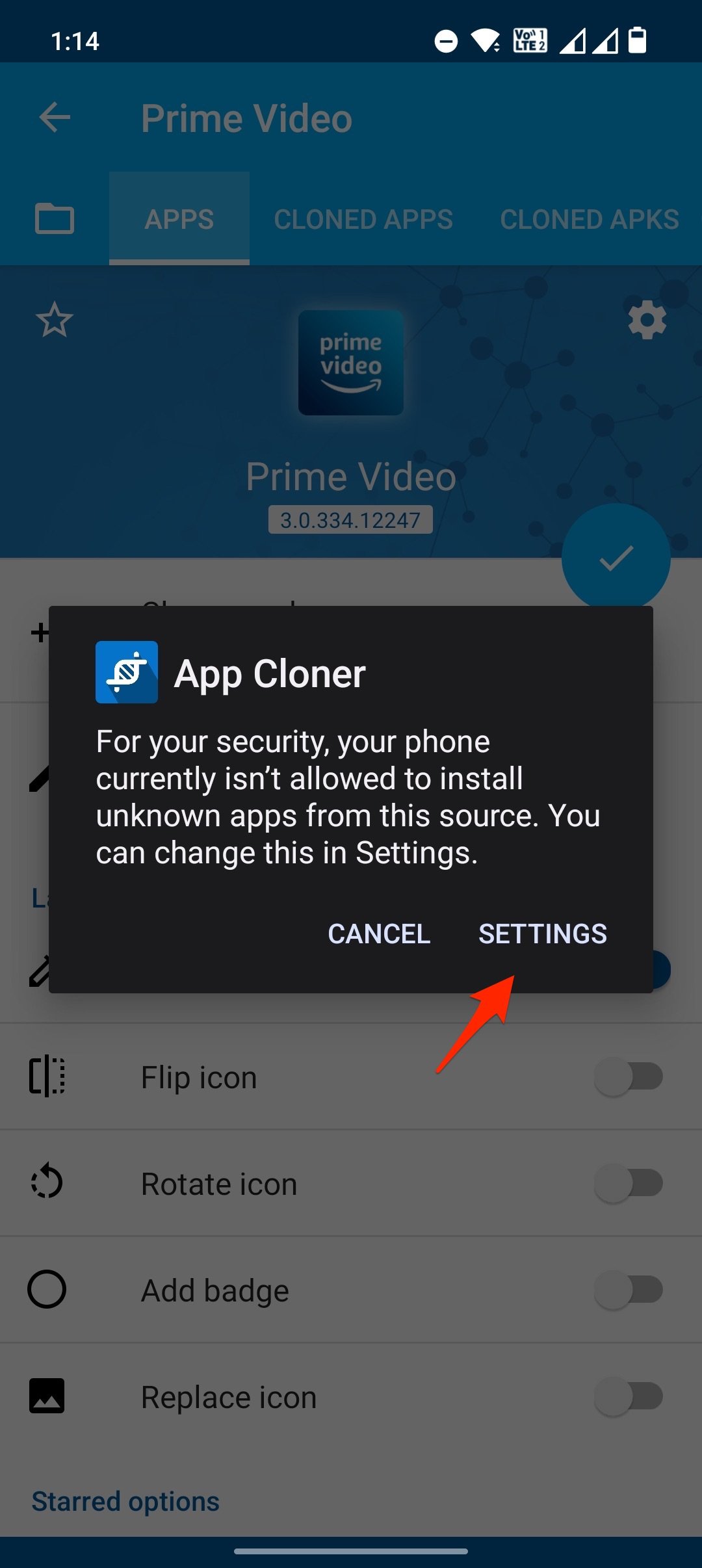 - 创建克隆的应用程序后,安装该应用程序并(启用未知来源)。