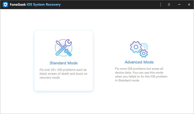 使用软件中的标准修复模式,您可以在不牺牲媒体文件或文档的情况下修复有缺陷的iOS设备。