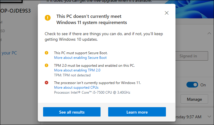 在Windows 11中,微软对可以安装的设备施加了一些相当严格的最低规格。这导致许多较旧的计算机被阻止访问更新。