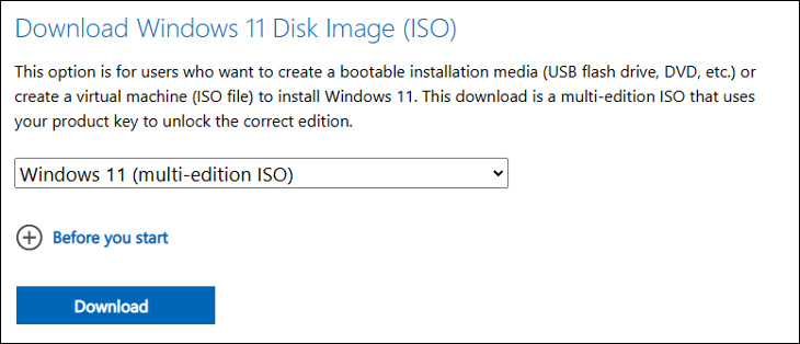 您可以从 Microsoft 网站下载 Windows 11 磁盘映像 (ISO)。在网站上,使用下拉菜单选择“Windows 11(多版ISO)”,然后单击“下载”。选择您想要的语言,然后单击“确认”。