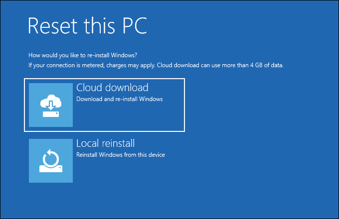 如果您有良好的互联网连接,云下载通常是更好的选择。它有助于确保执行全新安装。安装文件可能在 4GB 左右,如果您有按流量计费的连接,这值得了解。