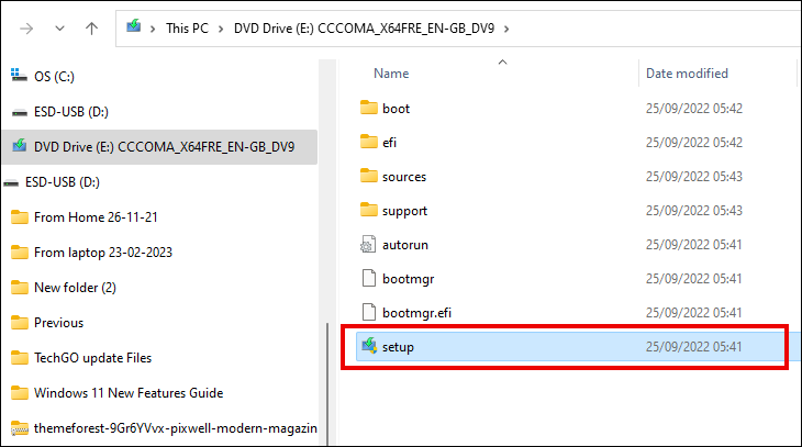 这将为磁盘映像创建一个虚拟驱动器,该驱动器将显示在文件资源管理器的导航面板中。选择虚拟驱动器,然后双击“设置.exe”开始该过程。