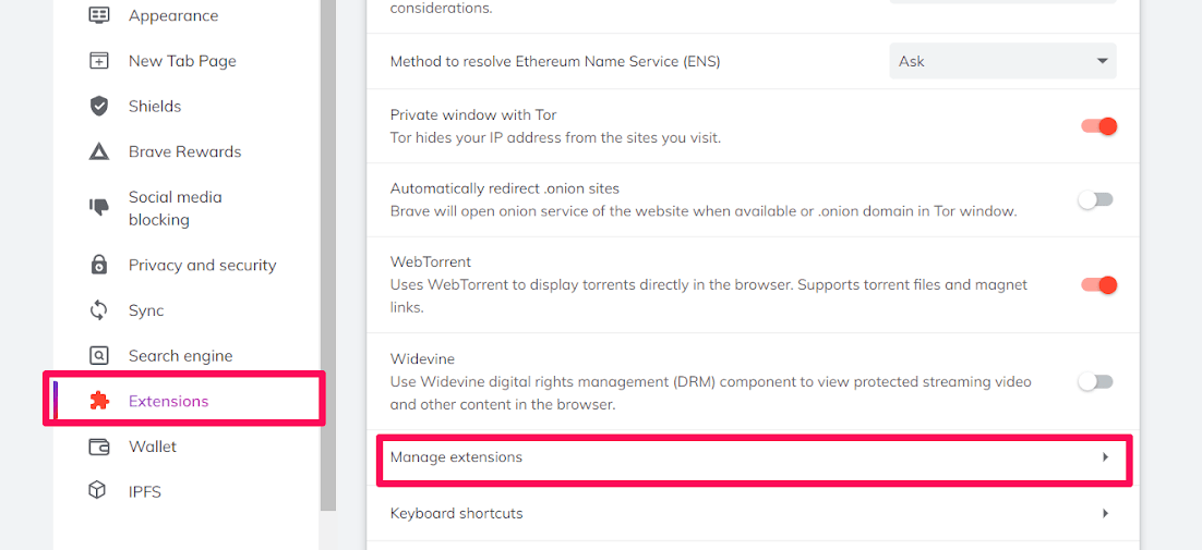 以下是禁用 Brave 浏览器扩展程序的步骤: