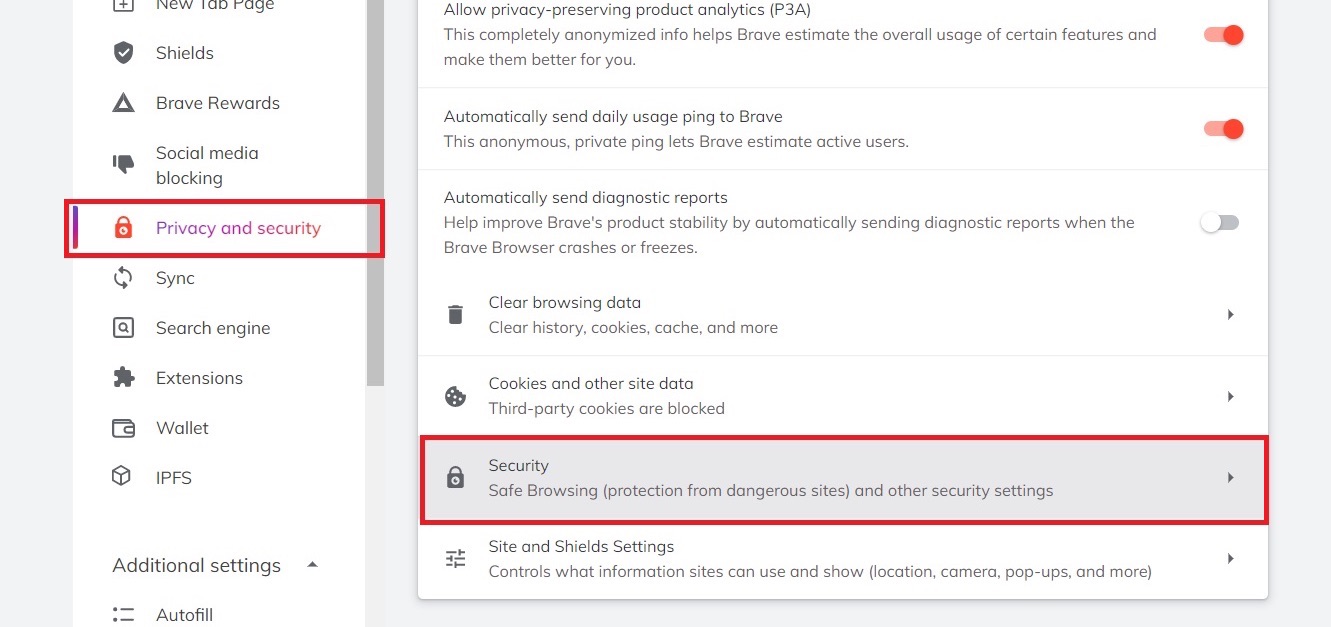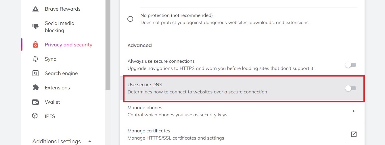 以下是在 Brave 计算机上禁用安全 DNS 的步骤: