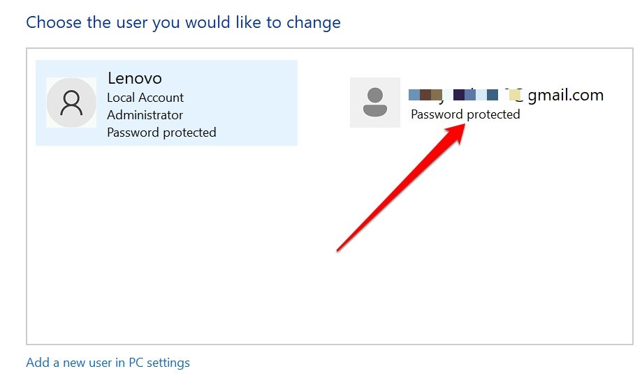 第 3 步:你将看到电脑上的所有用户帐户。在“选择要更改的用户”下,选择要删除的 Microsoft 帐户。