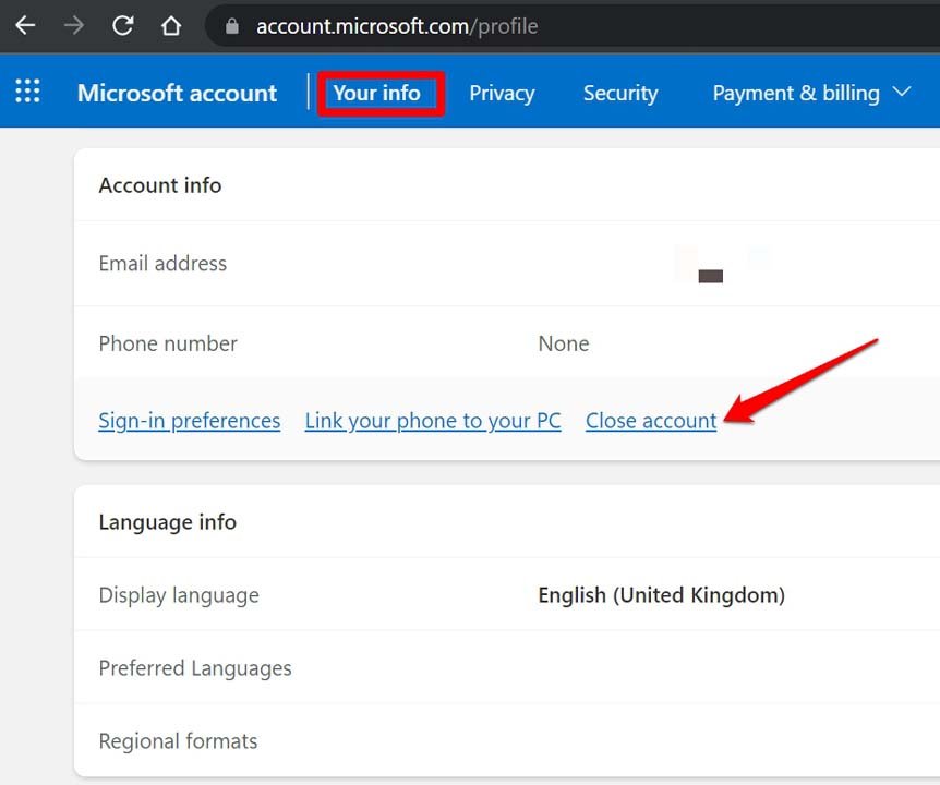 第 7 步:滚动到帐户信息,然后单击关闭帐户。