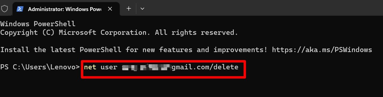 如果您习惯使用命令提示符,则可以使用一些命令从 Windows 11 中删除没有密码的 Microsoft 帐户。以下是您可以做到这一点的方法: