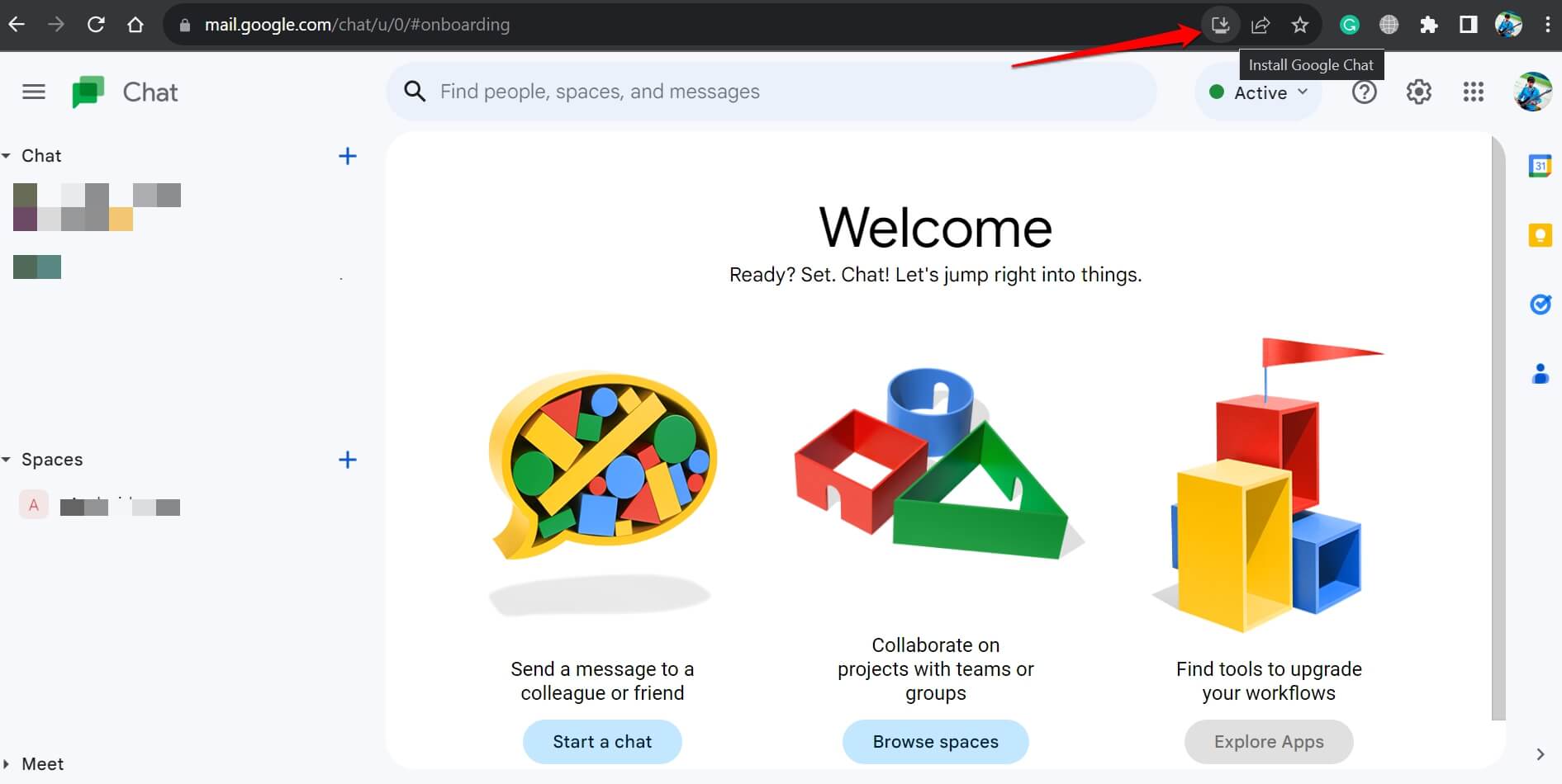 - 在URL栏中,向右,单击图标 安装谷歌聊天.
