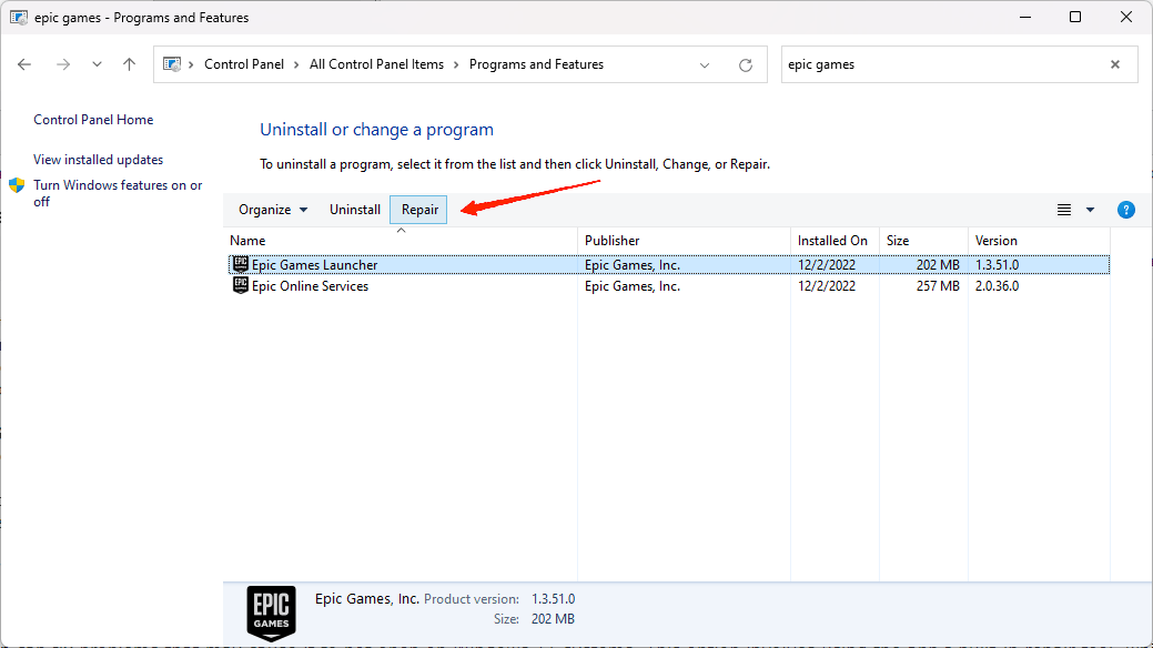 6:修复Epic游戏启动器应用程序
