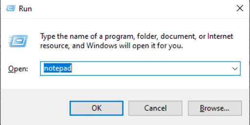 - 启动全新的记事本文档。为此,请按 Windows 键 + R,输入“记事本”,然后单击确定。