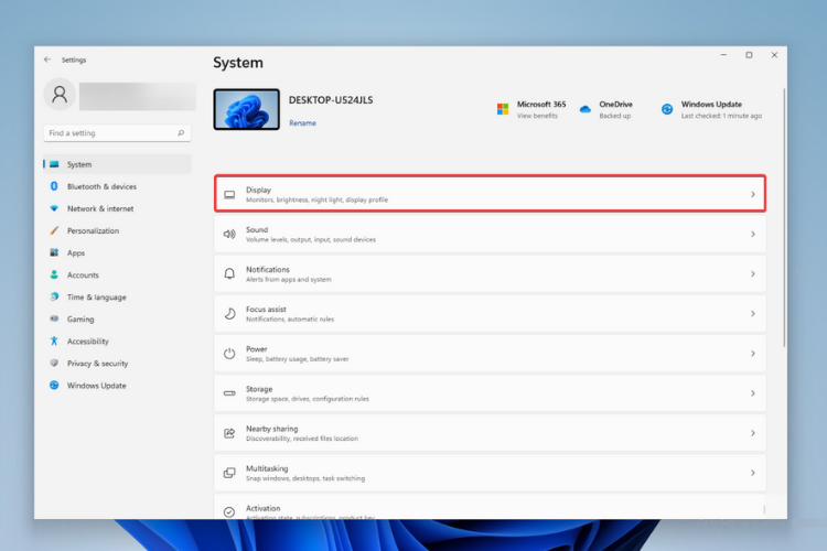 - 然后,从右侧窗格转到 显示。