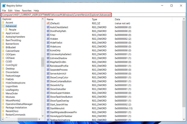 Computer\HKEY_CURRENT_USER\Software\Microsoft\Windows\CurrentVersion\Explorer\Advanced