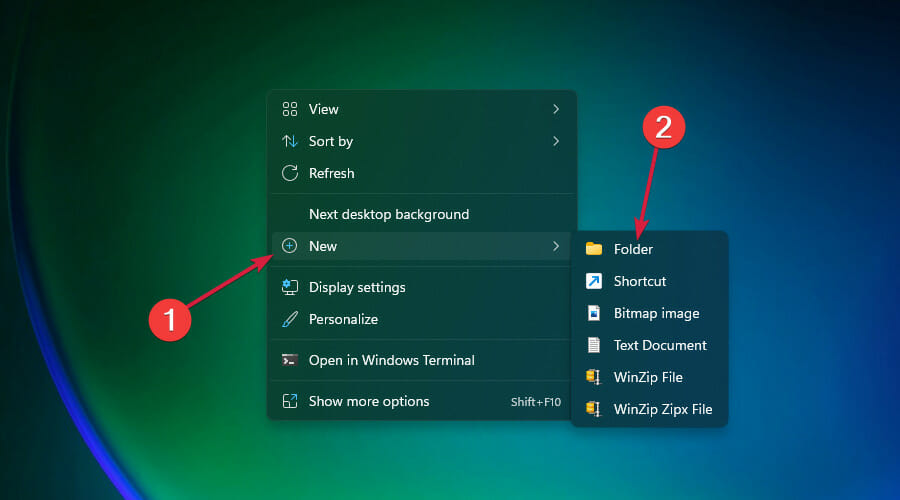 - 右键单击桌面上的空白区域,选择“新建”并选择“文件夹”。