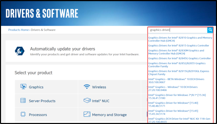 - 假设您访问英特尔下载中心。在搜索栏中,您可以输入所需的规格,如下例所示: