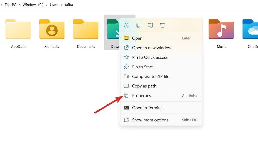- 右键单击该文件夹,然后从上下文菜单中选择“属性”选项。