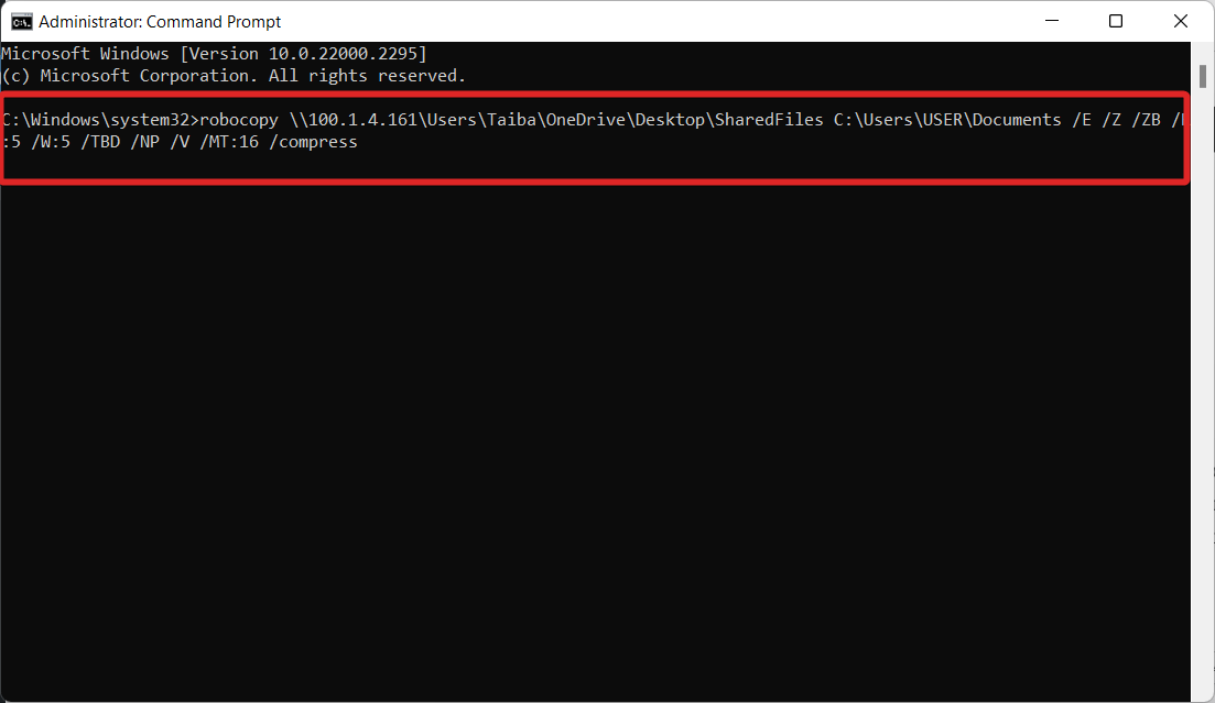 以下演练将解释使用 Windows 11 上的 Robocopy 命令通过网络复制文件的过程。