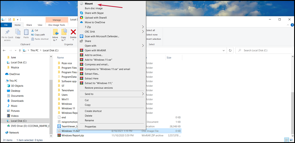 - 现在您可以创建可引导的 USB或 DVD,或者只需右键单击 ISO 并选择安装选项。
