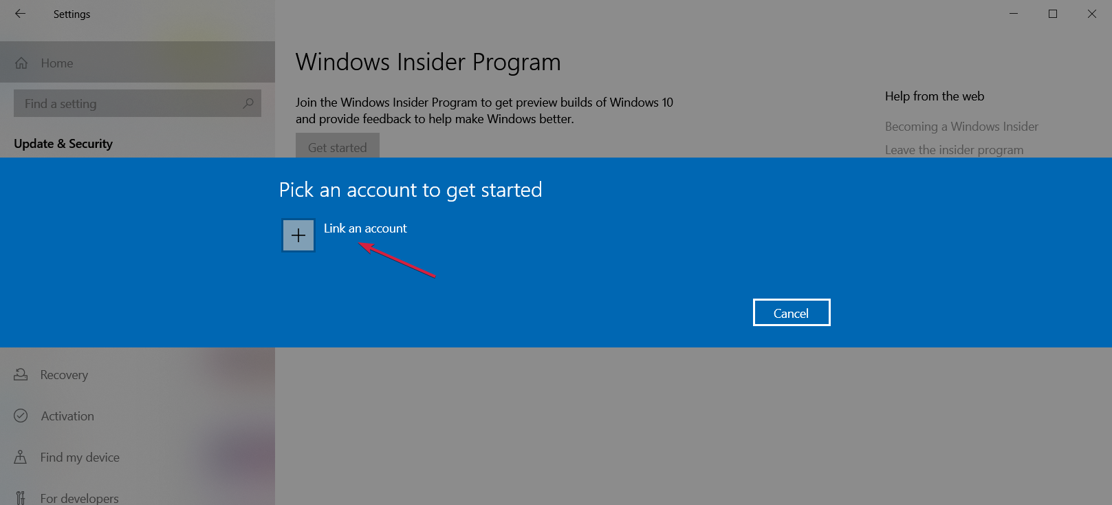 - 现在单击“ Windows 预览体验计划”窗口中的“入门”按钮。