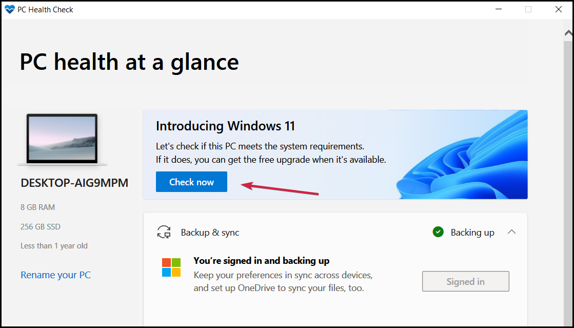 首先,查看您的 PC 是否符合免费升级到 Windows 11 的条件。在这方面,您只需下载 PC Health Check。