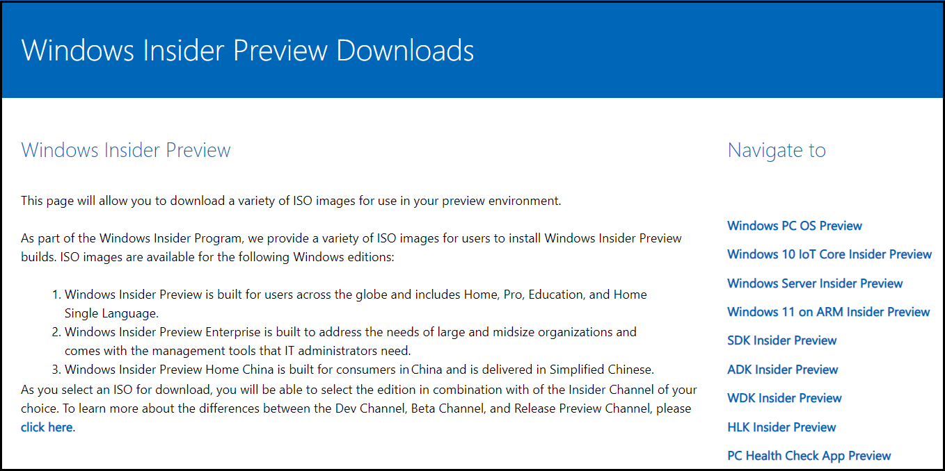 - 转到Windows Insider Preview 下载页面。您必须登录您的Insider帐户并设置为Dev Channel或Beta Channel。