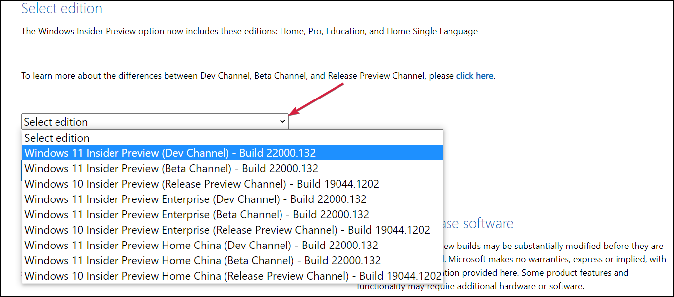 - 向下滚动页面并在Select edition下选择Windows 11。
