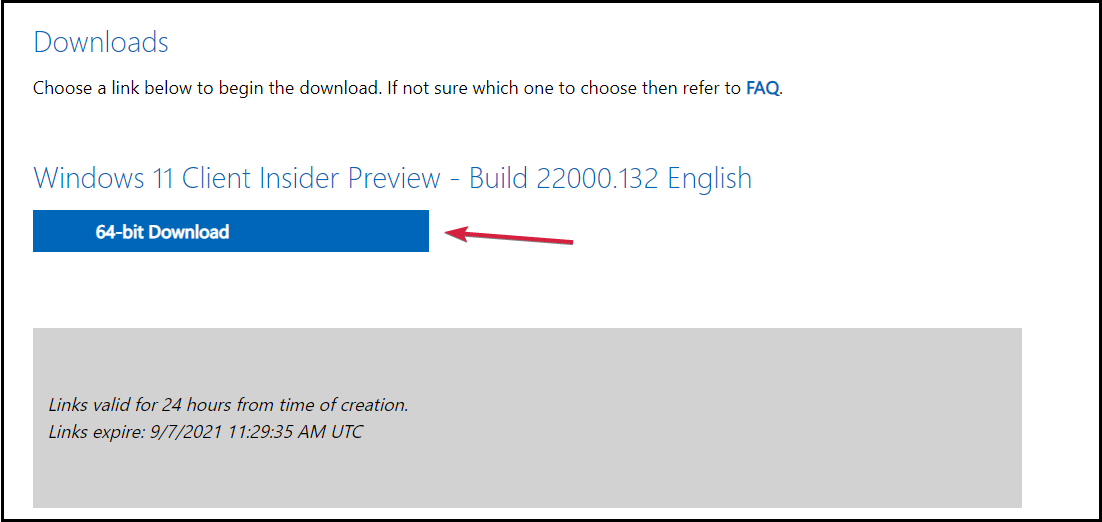 - 您还需要选择语言,然后,您将收到一个下载链接,您将能够单击64 位下载按钮以获取 Windows 11 ISO。