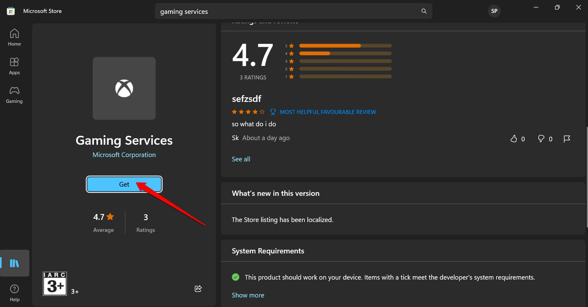 - 接下来,从 Microsoft Store 安装游戏服务。