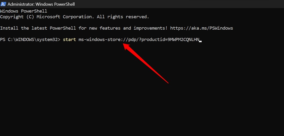 start ms-windows-store://pdp/?productid=9MWPM2CQNLHN