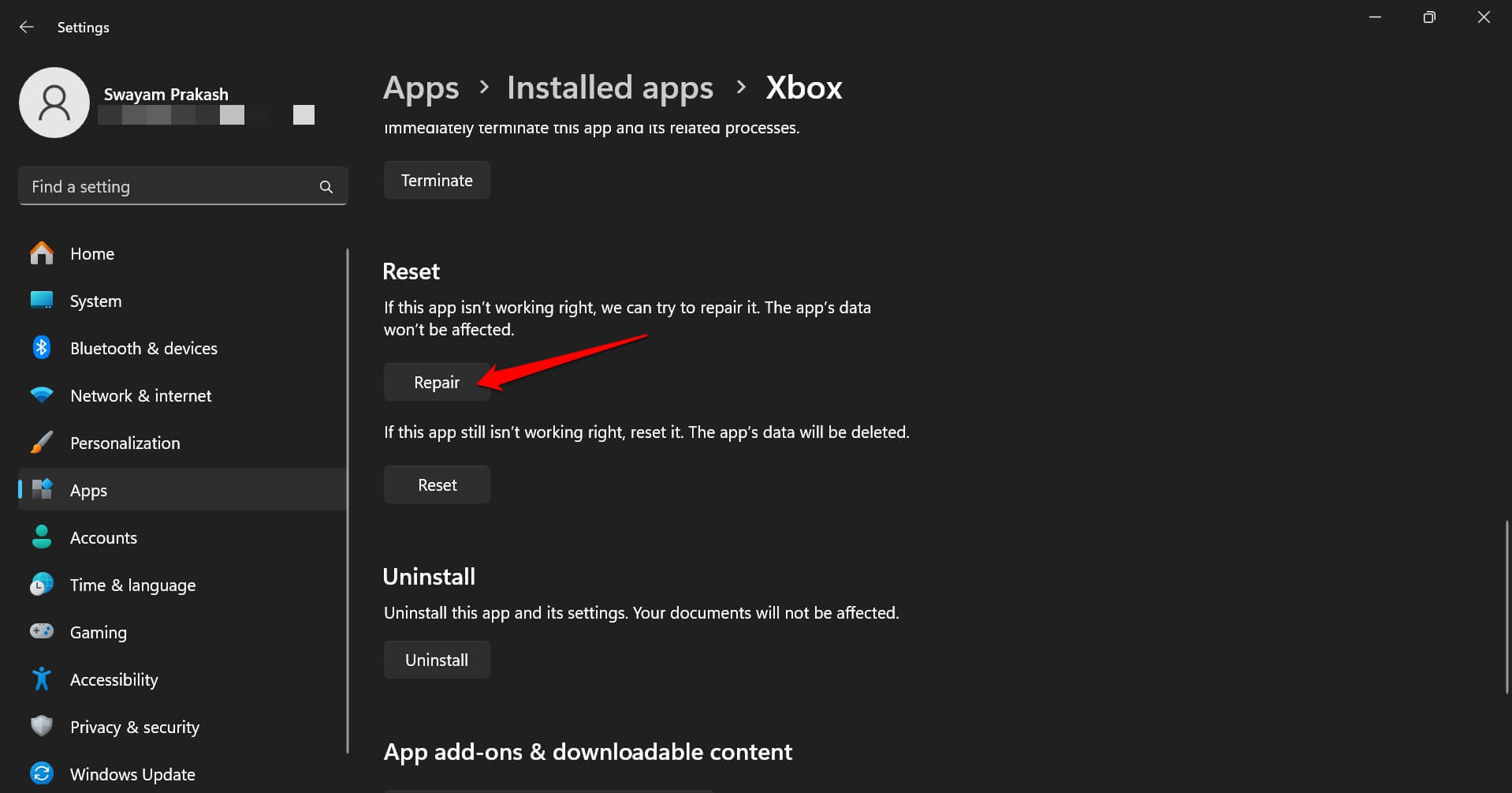 如果 Xbox 应用程序存在一些技术问题,您可以通过从 Windows 系统设置修复应用程序来修复它。