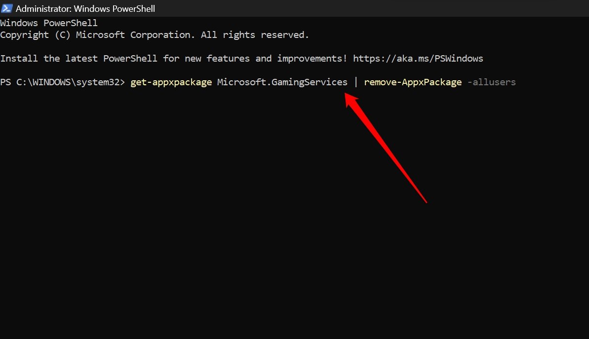 get-appxpackage Microsoft.GamingServices | remove-AppxPackage -allusers