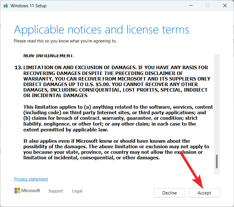- 前往可执行文件的下载位置,双击 MediaCreationToolW11.exe 文件将启动该工具。