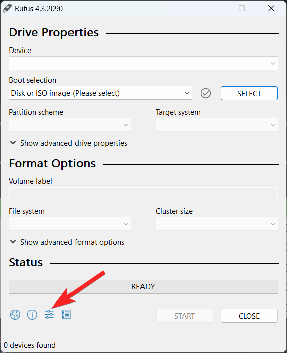 - 现在关闭 Rufus 工具并重新启动它。
