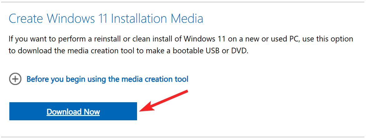 - 单击“立即下载工具”选项,该选项位于“创建 Windows 11 安装媒体”部分下。