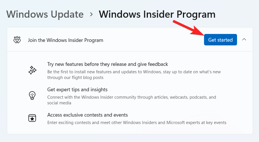 - 按“加入 Windows 预览体验计划”旁边的“开始使用”按钮。
