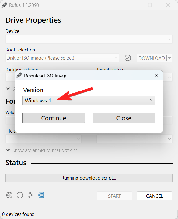- 选择 Windows 11 选项并按继续按钮。