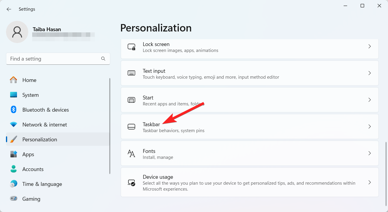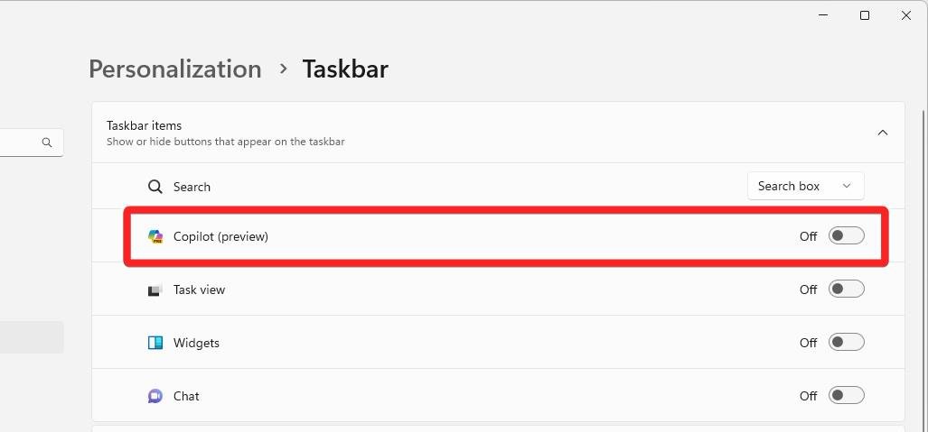 - 从“个性化”菜单中选择任务栏。要激活 Copilot(预览版),请拨动它旁边的开关。