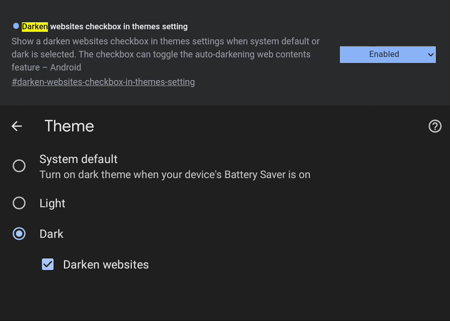 Android 版 Google Chrome 可让您自动使网站变暗,但该设置适用于您浏览的所有网站。