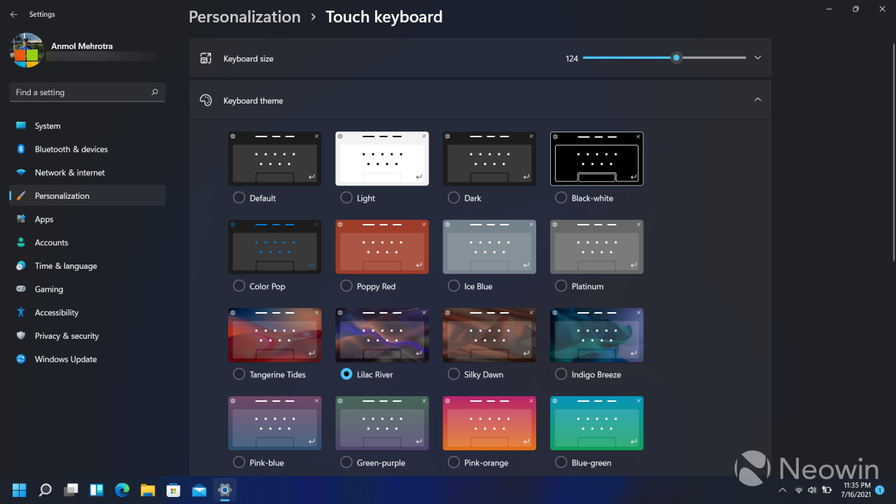 其中一项重大改进是对新的屏幕触摸键盘进行的,该键盘现在具有各种主题、键盘尺寸等。您可以导航至设置 > 个性化 > 触摸键盘以访问自定义选项。
