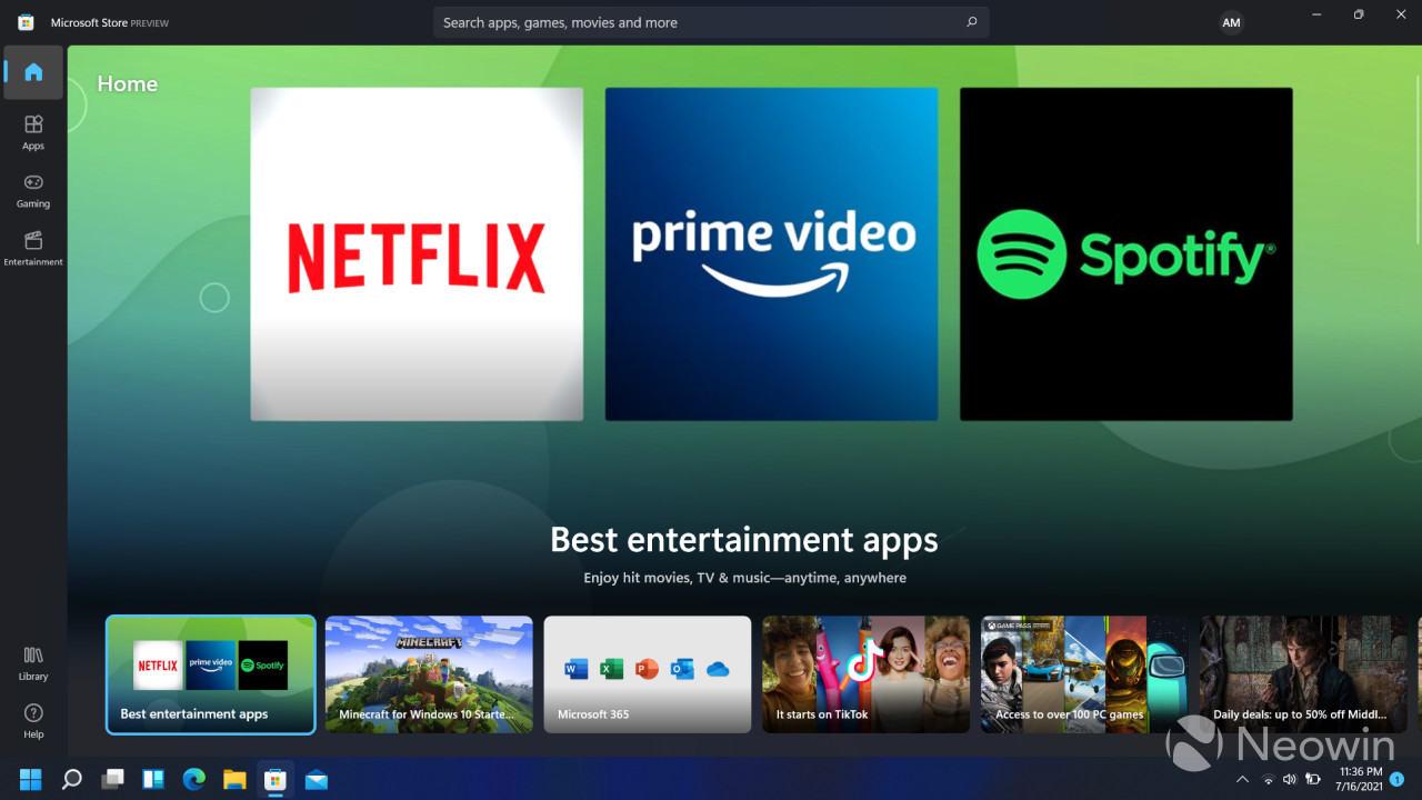Windows 11 还带来了经过改进的Microsoft Store它从操作系统的其余部分获取 UI 灵感。新的 Store 应用程序还对 UI 进行了更改,以提供更好的用户体验。例如,搜索现在位于应用程序的顶部中间,而Microsoft 已将类别移至应用程序的左侧。