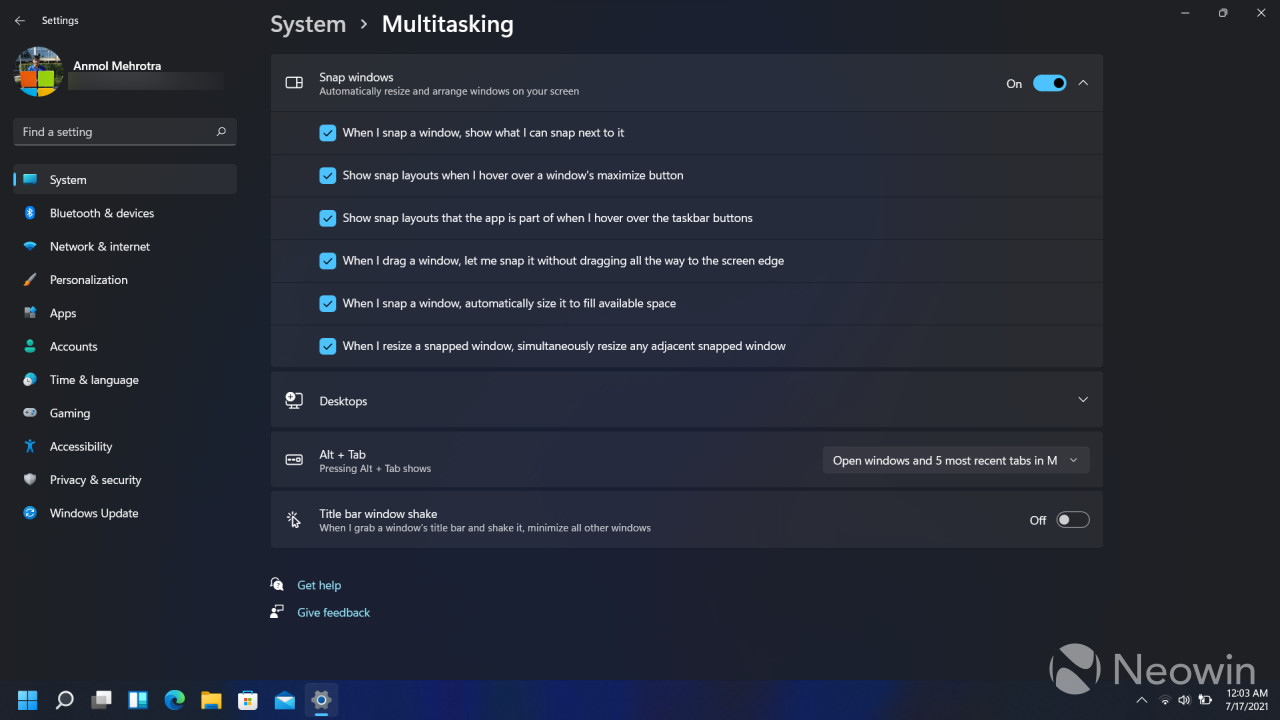 在 Windows 11 发布会上,微软在多任务处理功能和改进方面做了大量工作。该公司强调了几个可以增强体验的生产力功能。最大的多任务改进之一是新的快照布局。如果您使用过Microsoft,您可能会熟悉这些过去的 PowerToys。本质上,对于 Windows 11,Microsoft当您想要在屏幕上捕捉两个或更多窗口时,将为用户提供预制布局。微软还将在任务栏上对捕捉的应用程序进行分组,因此您不必手动最小化和最大化每个应用程序。相反,您只需单击组即可最小化或最大化整个组。不幸的是,微软目前仅提供少数选项,因此它不是 PowerToys 用户的完美替代品。您可以通过导航到“设置”>“系统”>“多任务处理”来控制/禁用快照辅助。