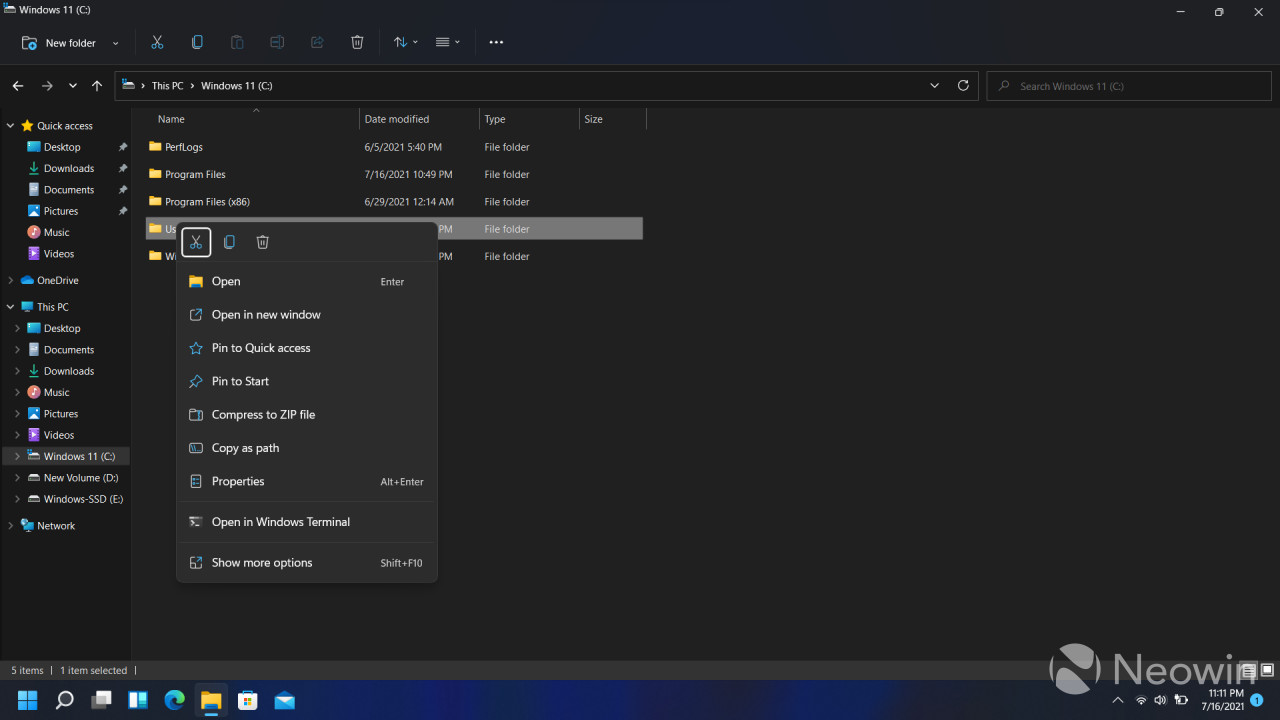 文件资源管理器还收到了一个新的右键单击上下文菜单,它再次与 Windows 11 的整体设计相匹配。微软也在这里在顶部添加了快速操作按钮,让用户可以轻松访问剪切、复制和粘贴选项。我们有一篇专门的文章,涵盖了有关 Windows 11 上文件管理器的更详细信息。