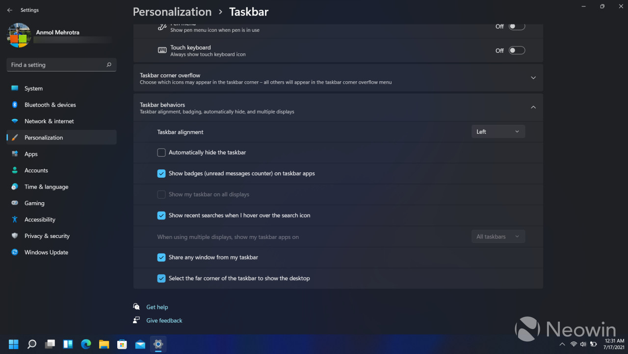 他们第一次登录时会注意到的最大变化是任务栏。微软改进了任务栏设计,看起来更符合整体用户界面。此外,微软已将任务栏图标移至中间,这是从现已解散的 Windows 10X中挑选的众多设计选择之一。而微软将允许用户将任务栏图标向左移动,该公司已经取消了一些任务栏功能,包括将任务栏移动到屏幕左侧、右侧或顶部的功能,以及调整任务栏高度的功能. 微软还杀死了任务栏上下文菜单。您可以在我们关于该主题的专门文章中阅读有关Windows 11 任务栏的更多信息。